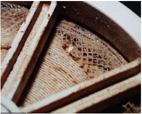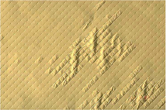 任何時刻,產(chǎn)水壓力高于進水或濃水0.3bar,復(fù)合膜就可能發(fā)生復(fù)合層間的剝離,可通過產(chǎn)水探測法來確定這類損壞。當打開受到產(chǎn)水背壓嚴重損壞的膜葉時,通常還會看到平行于產(chǎn)水管的膜最外邊出現(xiàn)拆痕,常常靠近最外側(cè)的膜袋粘接線處。膜的破裂最有可能出現(xiàn)在進水側(cè)、最外側(cè)和濃水側(cè)這三處粘接密封線附近,其他位置受到進水網(wǎng)格的支撐,很多網(wǎng)格的小格內(nèi)就會出現(xiàn)很多氣泡狀剝離,使得膜脫鹽層受到強烈拉伸,元件的脫鹽率降低。