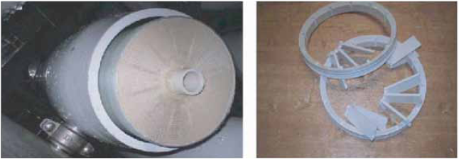產(chǎn)生望遠鏡現(xiàn)象的原因是進水與濃水間的壓差過大,8 英寸的元件因為膜截面面積更大更容易出現(xiàn)這種現(xiàn)象,必須確保在膜壓力容器內(nèi)安裝抗應(yīng)力環(huán)以支撐住8 英寸膜元件的外包皮,較小直徑膜元件由其產(chǎn)水管及其抗應(yīng)力器來支持,防止外包皮的滑動。出現(xiàn)望遠鏡現(xiàn)象后,應(yīng)該用新元件更換被損壞的膜元件,并消除產(chǎn)生的原因。