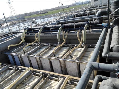 一體式膜生物反應(yīng)器是指把膜組件置于生物反應(yīng)器內(nèi)部。進(jìn)水進(jìn)入膜生物反應(yīng)器,其中的大部分污染物被混合液中的活性污泥去除,再在外壓作用下由膜過濾出水。