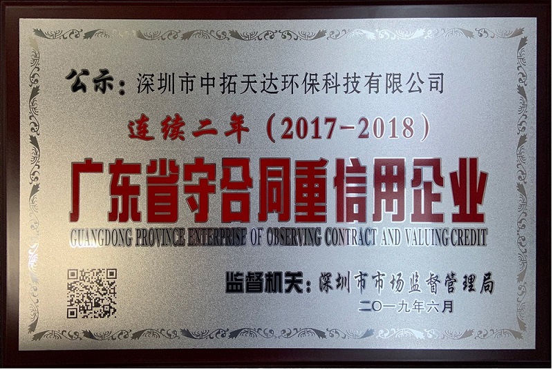 中拓天達(dá)公司始終堅(jiān)持把守合同、重信用視為企業(yè)經(jīng)營發(fā)展的根本,且在誠信建設(shè)、合同管理、守信經(jīng)營等方面不斷完善,依托產(chǎn)品技術(shù)的創(chuàng)新,以及服務(wù)質(zhì)量的提升,從而贏得客戶以及社會(huì)各行業(yè)的高度信賴。此次,公司再度獲評(píng)“廣東省守合同重信用企業(yè)”榮譽(yù),是社會(huì)各界對(duì)中拓天達(dá)公司多年誠信經(jīng)營的肯定。為此,公司未來將繼續(xù)以此為契機(jī),通過加強(qiáng)信用、合同等管理,完善公司誠信體系建設(shè),在互信互助、坦誠合作的基礎(chǔ)上不斷開拓進(jìn)取,與客戶建立互惠互利、共同發(fā)展的穩(wěn)定關(guān)系,從而更好地發(fā)揮公司在環(huán)保行業(yè)的示范帶頭作用,為客戶提供更優(yōu)質(zhì)的純水、廢水處理、廢水回用等方面的服務(wù)。