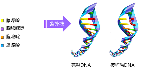 光量子理論認為,光是物質(zhì)運行的一種特殊形式,是一粒粒不連接的粒子流。每一粒波長 253.7nm 的紫外線光子具有 4.9eV 的能量。當紫外線照射到微生物時,便發(fā)生能量的傳遞和積累,積累結(jié)果造成微生物的滅活,從而達到消毒的目的。生命科學(xué)揭示了核酸是一切生命體的基本物質(zhì)和生命基礎(chǔ),微生物體受到紫外線照射,吸取了紫外線的能量,實質(zhì)是核酸對紫外線能量的吸收。核酸分為核糖核酸(RNA)和脫氧核糖核酸(DNA)兩大類,其共同點是由磷酸二脂鍵按嘌呤與嘧啶堿基配對的原則而連接起來的多核苷酸鏈。紫外線一方面可使核酸突變、阻礙其復(fù)制、轉(zhuǎn)錄封鎖及蛋白質(zhì)的合成;另一方面,產(chǎn)生自由基可引起光電離,從而導(dǎo)致細胞的死亡。