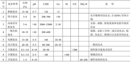 表1   印制電路板廢水水質(zhì)水量分類表                      (單位:mg/L,pH 除外)