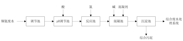 圖3   銅氨廢水折點加氯法的預(yù)處理工藝流程