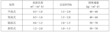 5)沉淀池的設(shè)計參數(shù)應(yīng)根據(jù)廢水處理試驗數(shù)據(jù)或參照類似廢水處理的沉淀池運行數(shù)據(jù)確定;當(dāng)沒有試驗條件和缺乏有關(guān)資料時,設(shè)計參數(shù)可參考表 2確定;