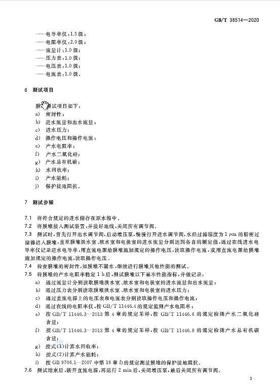 《電去離子膜堆測(cè)試方法》于2021年2月1日起施行