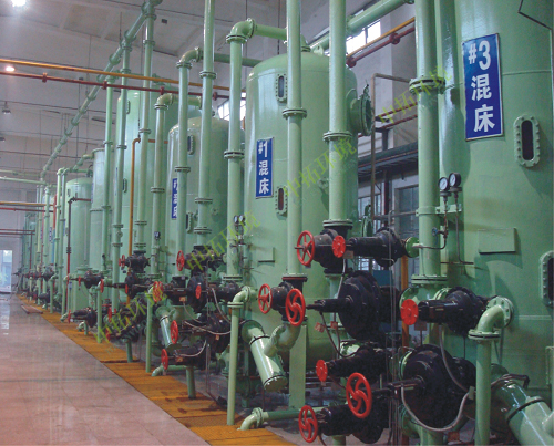 混床(混合離子交換器)內(nèi)裝有氫型陽離子交換樹脂和裝有氫氧型陰離子交換樹脂,主要用于去除水中的陰、陽離子。