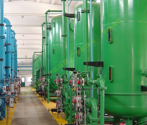 一級復床(強酸、強堿樹脂)適用于進水總含鹽量不大于500mg/L,相當于總陽離子含量不大于7mmol/L,總陰離子含量不大于4mmol/L。超過上述進水水質范圍,可采用藥劑軟化、電滲析、反滲透等水處理技術,作為預除鹽(預軟化)的手段與離子交換組成聯合工藝,以擴大適用范圍。如果采用弱型樹脂與強型樹脂串聯工藝或雙層床組成復床,則進水條件可適當放寬,但應通過技術經濟比較后確定。